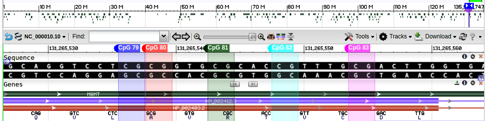 The TRUPCR™ MGMT Assay offers precise detection of methylation at five critical CpG sites (79, 80, 81, 82, and 83) located within DMR2, a hotspot for epigenetic regulation (Figure 1). These sites start at chr10:131265536 (hg19 build) and have been widely reported as clinically relevant for determining MGMT silencing status.